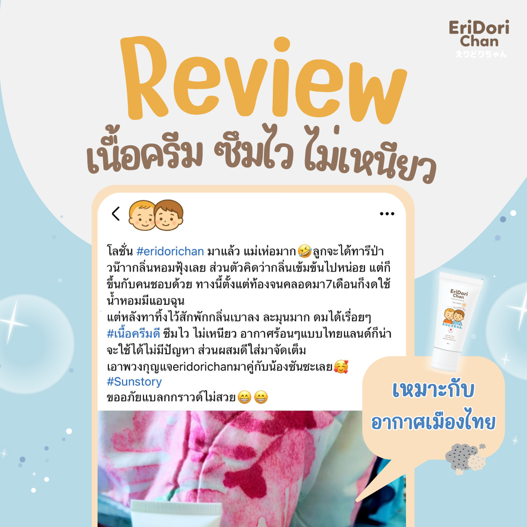 โลชั่นเนื้อบางเบา ซึมไว ไม่เหนียวเหนอะหนะ พร้อมแต่งตัวได้ทันที